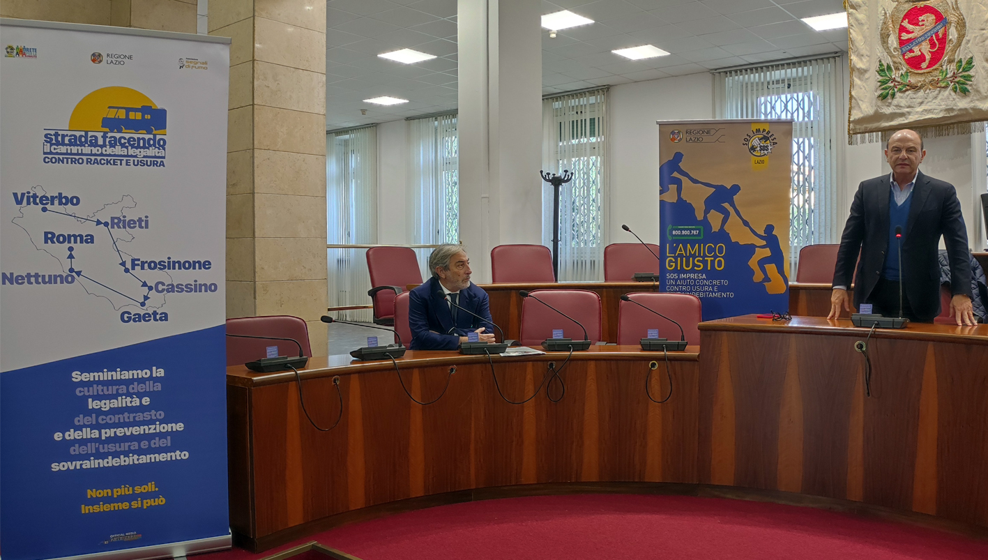 “Strada Facendo. Il cammino della Legalità” ha fatto tappa a Frosinone. L’iniziativa, organizzata da SoS Impresa, presieduta da Pasquale Busà, per celebrare il trentennale dell’associazione antiracket e antiusura, è stata illustrata nell’aula consiliare del Comune di Frosinone, alla presenza del sindaco, Riccardo Mastrangeli.