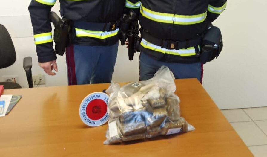 Ma agli agenti non era sfuggito il fatto che nella fuga proprio il conducente, accostatosi sulla corsia di emergenza, aveva gettato dal finestrino qualcosa, successivamente risultatati essere 41 involucri contenenti sostanza stupefacente Hashish per quasi 4 Kg.