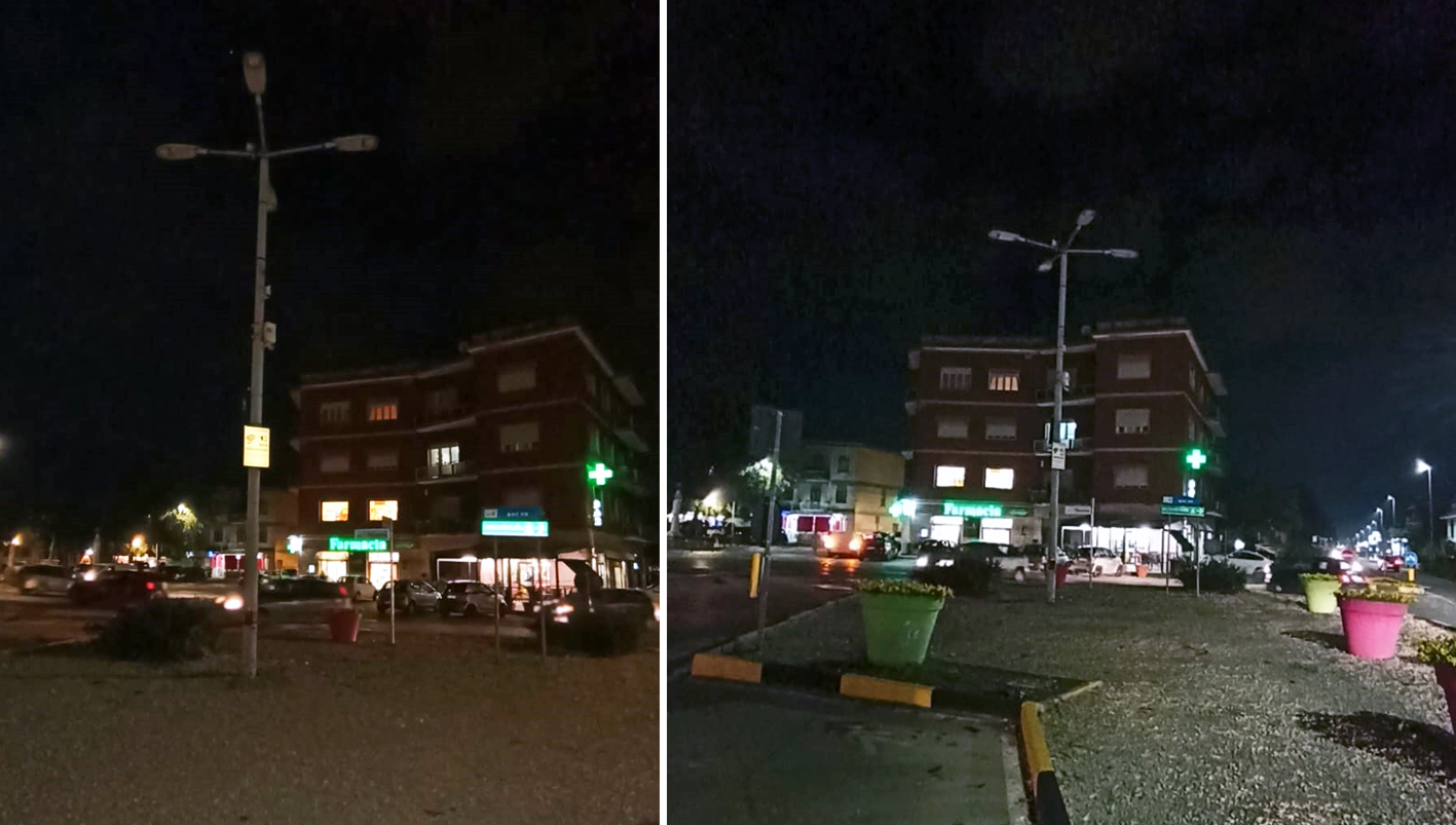 Una situazione senz’altro di pericolo, visto che si tratta di un incrocio di strade molto trafficate, che rischierà prima o poi di far verificare qualche sinistro oppure, speriamo di no, l’investimento di qualche pedone che a causa dell’oscurità potrebbe non essere visto dagli autoveicoli mentre attraversa o cammina a bordo strada.