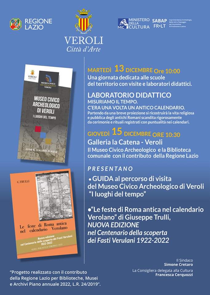 ‘I luoghi del tempo’, titolo della manifestazione organizzata dal Comune di Veroli, dedicata agli studenti, per ricordare che la cultura del territorio, le tradizioni, la storia, i paesaggi le bellezze poco conosciute vanno scoperte, valorizzate e mai dimenticate.