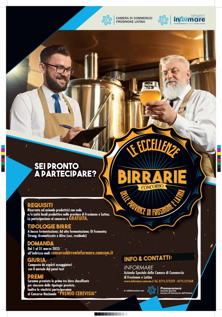 Al via oggi, mercoledì 1° marzo, le domande per partecipare al primo Concorso ‘Le Eccellenze Birraie delle province di Frosinone e Latina’ organizzato da INFORMARE Azienda Speciale Internazionalizzazione Formazione e Economia del Mare della Camera di Commercio Frosinone Latina.