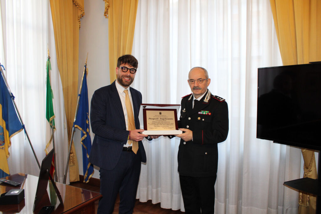“All’illustre figlio della nostra terra per l’impegno e l’abnegazione con cui, da sempre, si dedica alla difesa dello Stato e della legalità. Con gratitudine e stima”: è questa la motivazione con cui nel pomeriggio di ieri, 7 marzo, presso Palazzo Jacobucci, il Presidente della Provincia di Frosinone, Luca Di Stefano, ha conferito una targa al Generale dei Carabinieri Pasquale Angelosanto, comandante del Ros (Reparto operativo speciale), originario di Sant’Elia Fiumerapido che ha messo fine alla latitanza di uno degli ultimi boss di Cosa Nostra, Matteo Messina Denaro.