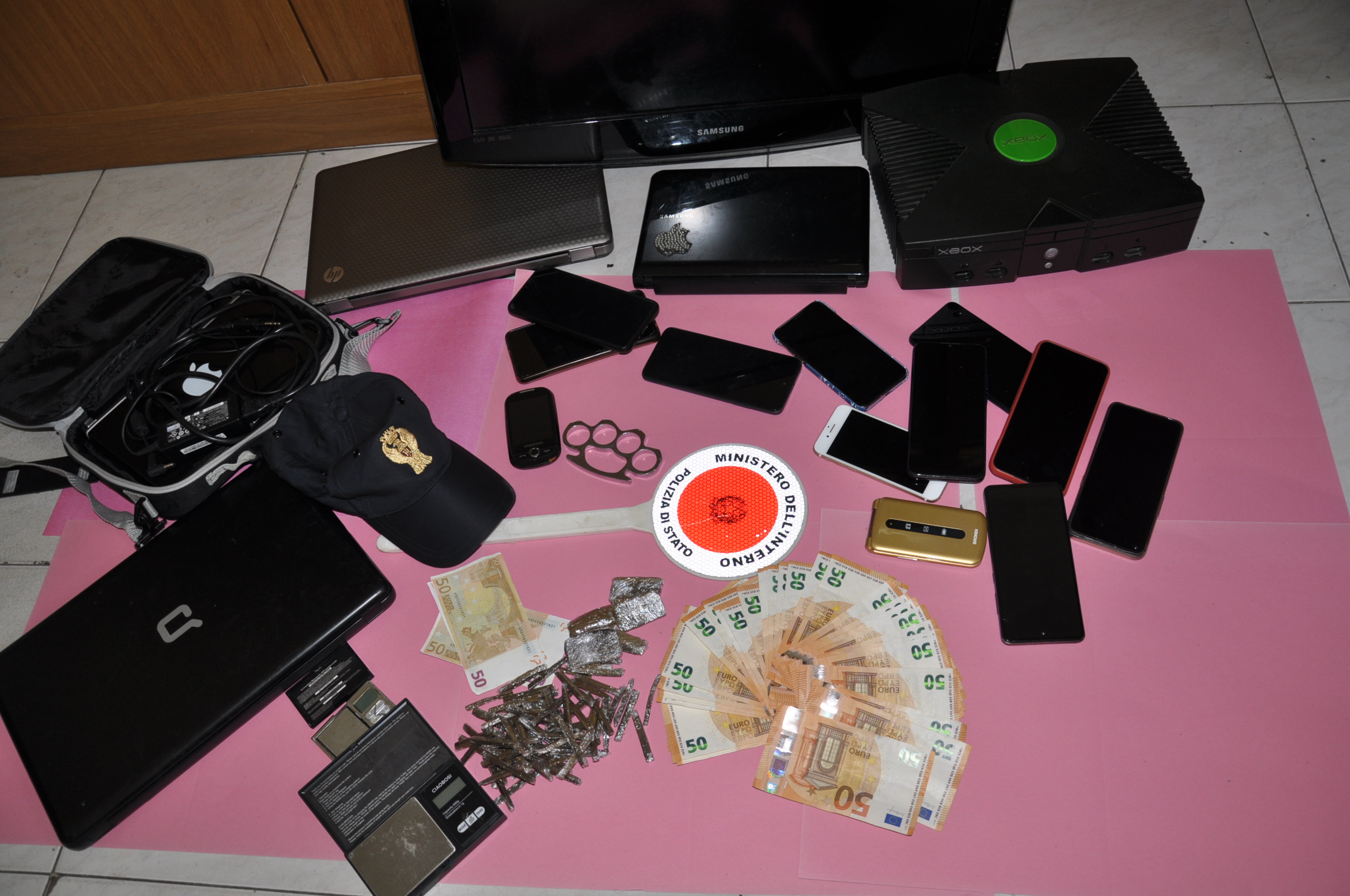 Successivamente veniva denunciato per gli stessi reati degli altri due soggetti. Dalla perquisizione si rinvenivano 100,80 grammi lordi di sostanza stupefacente del tipo derivati della canapa indiana confezioni in piccoli panetti occultati all’interno di una scatola di telefono cellulare, due bilancini del tipo di precisione e delle buste in plastica tagliate a pezzi, 11 telefoni radiomobili ognuno con la scheda di pertinenza, la somma di euro 1950,00 in contante celati all’interno di uno zaino, il permesso di soggiorno del terzo cittadino egiziano, la patente di guida di un cittadino del posto ed infine una carta di credito bancoposta.