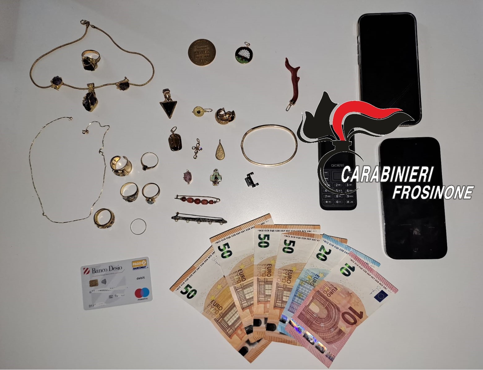 Nel pomeriggio di giovedì 4 maggio 2023, i Carabinieri della Stazione di Ferentino (FR), nel corso di un’attività di controllo alla circolazione stradale nei pressi del casello dell’autostrada A1, procedevano al controllo di un’autovettura e, insospettiti dall’atteggiamento nervoso dei due uomini che vi erano a bordo, procedevano anche alla perquisizione personale trovandoli in possesso di denaro contante e di diversi monili in oro di cui non sapevano dare spiegazioni della loro provenienza.