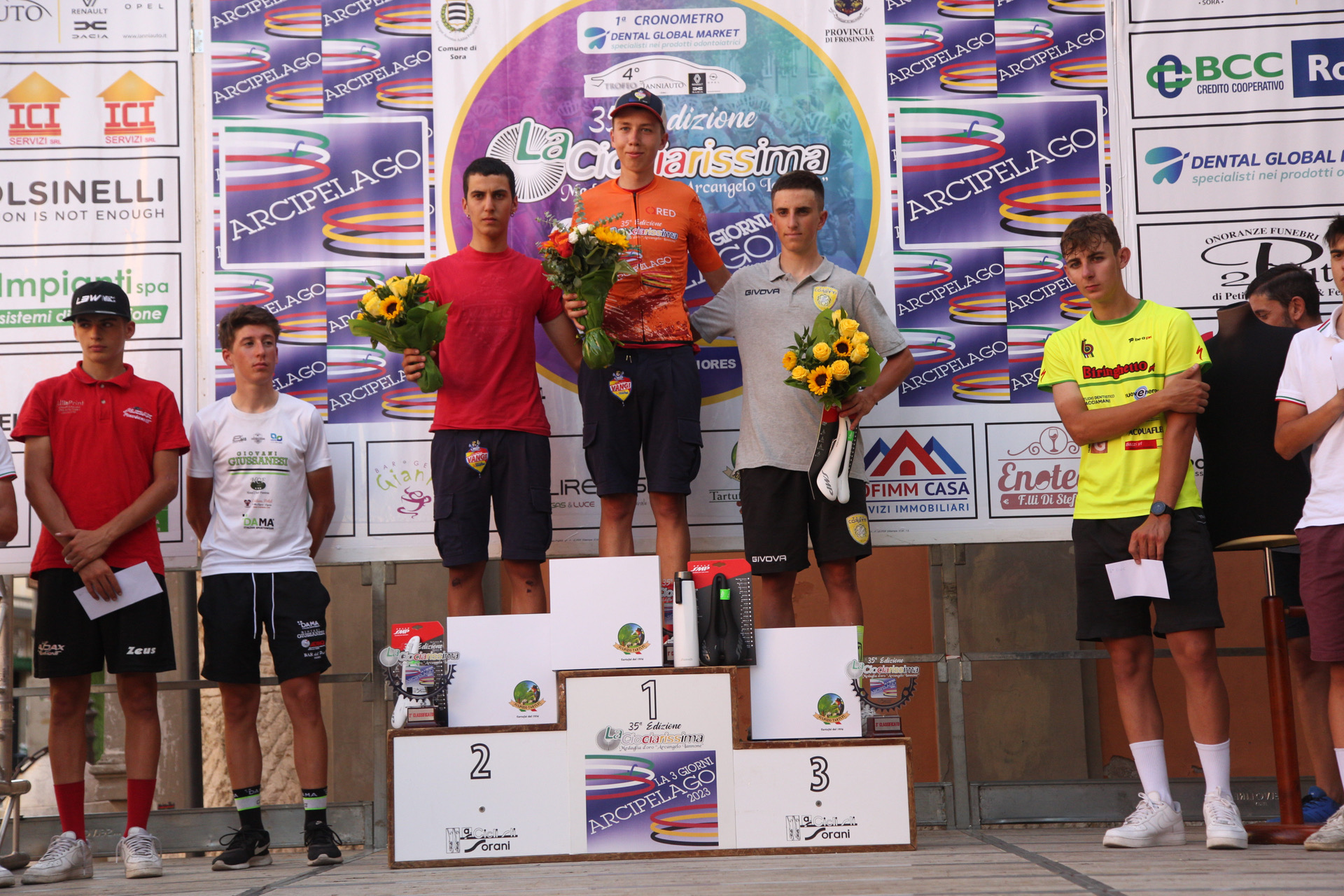 Sul palco premiazioni con la Ciclisti Sorani (Gianni Bruni, Riccardo Venditti e Marco Pagnanelli) l’assessore del Comune di Sora, Francesco De Gasperis e il consigliere comunale delegato allo Sport per il Comune di Sora, Naike Maltese. Maglia ARANCIONE per il vincitore della 35° La Ciociarissima Yevhen Testsov, maglia AZZURRA per il vincitore de “La 3 Giorni Arcipelago” Pietro Sterbini. La famiglia Iannone, alla quale è intitolata la corsa sorana, ha omaggiato con una medaglia d’oro sia il vincitore di giornata, Testsov che l’atleta sorano, Gianmarco Vicini.