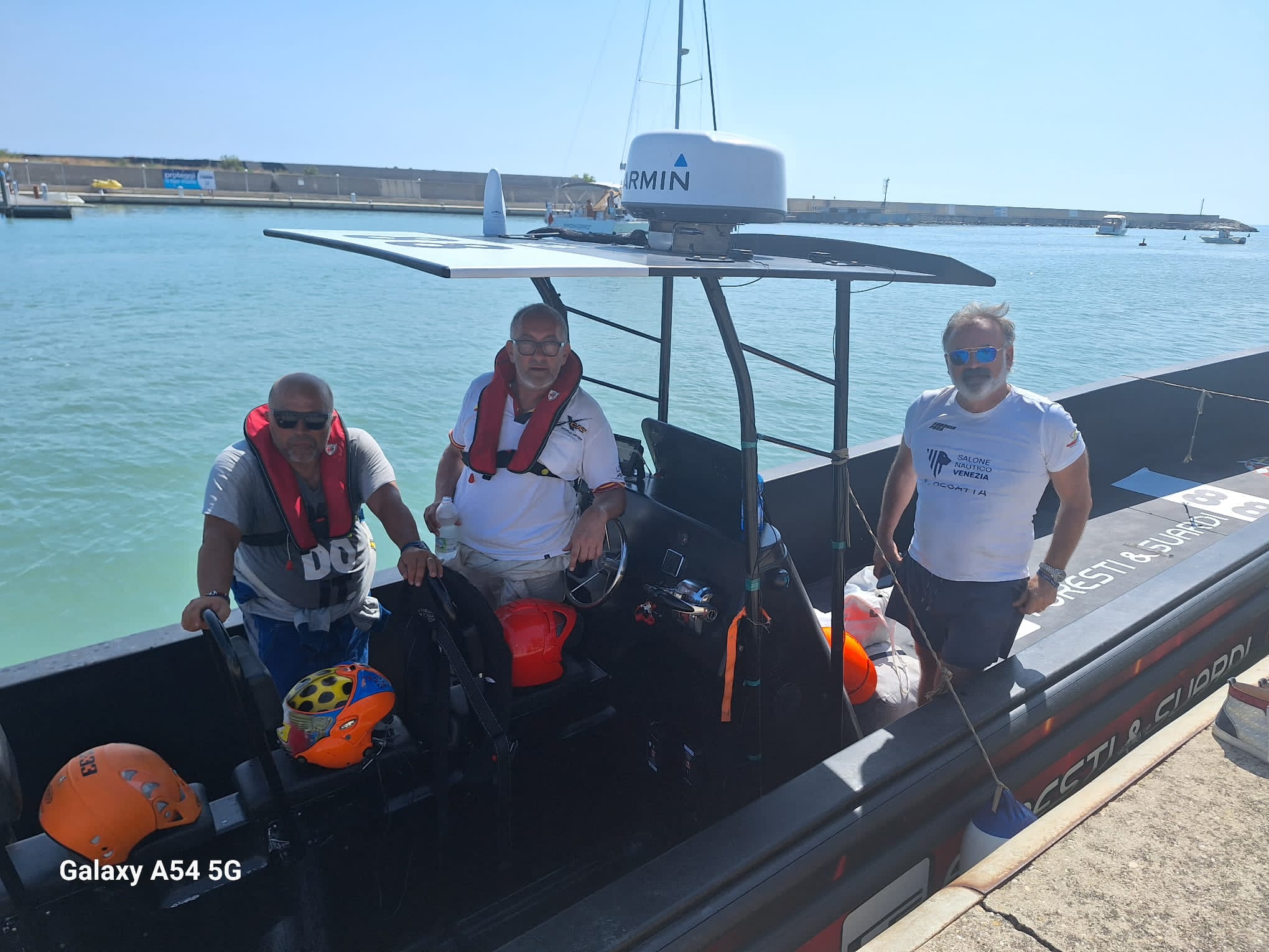 La prima tappa, da Venezia a Cervia, è partita alle 11:00 di venerdì mattina dopo una splendida parata davanti Piazza San Marco, quindi le imbarcazioni si sono avvicinate alla bocca di porto della laguna veneta, dalla quale è stato dato lo start. Il mare, previsto calmo in tutte e tre le tappe, si è rivelato ben diverso sin da subito, con onde che superavano i 2metri e mezzo, che hanno messo a dura prova scafi e piloti. Al via scattava in testa immediatamente l’imbarcazione 88 Marmat System-Foresti e Suardi, condotta dal trio Piersimone Volpe (di Frosinone), pilota esperto con vari titoli nazionali, europei e mondiali con 23 gare alle spalle, Massimiliano de Fabiis, costruttore del Sea Phantom 38 motorizzato con 3 motori Suzuki 300 ed il vicepresidente nazionale di Assonautica, Marino Masiero, che conduceva per le primissime miglia, superata solo dall’888 Interceptor, un pattugliatore militare del Cantiere Vittoria, rimanendo in seconda posizione per le prime 20 miglia, davanti ad imbarcazioni nettamente più performanti sulla carta ed iscritte in categorie più veloci. Solo un improvviso guasto elettrico ha fermato lo scafo n. 88, che andava a finire in ultima posizione, stando fermo oltre 30 minuti. Dopo aver brillantemente riparato il guasto, grazie all’esperienza e alla competenza del costruttore, l’imbarcazione è riuscita a recuperare posizioni fino a raggiungere Cervia in terza posizione nella categoria 2 (ovvero le imbarcazioni da 10 a 16 metri).