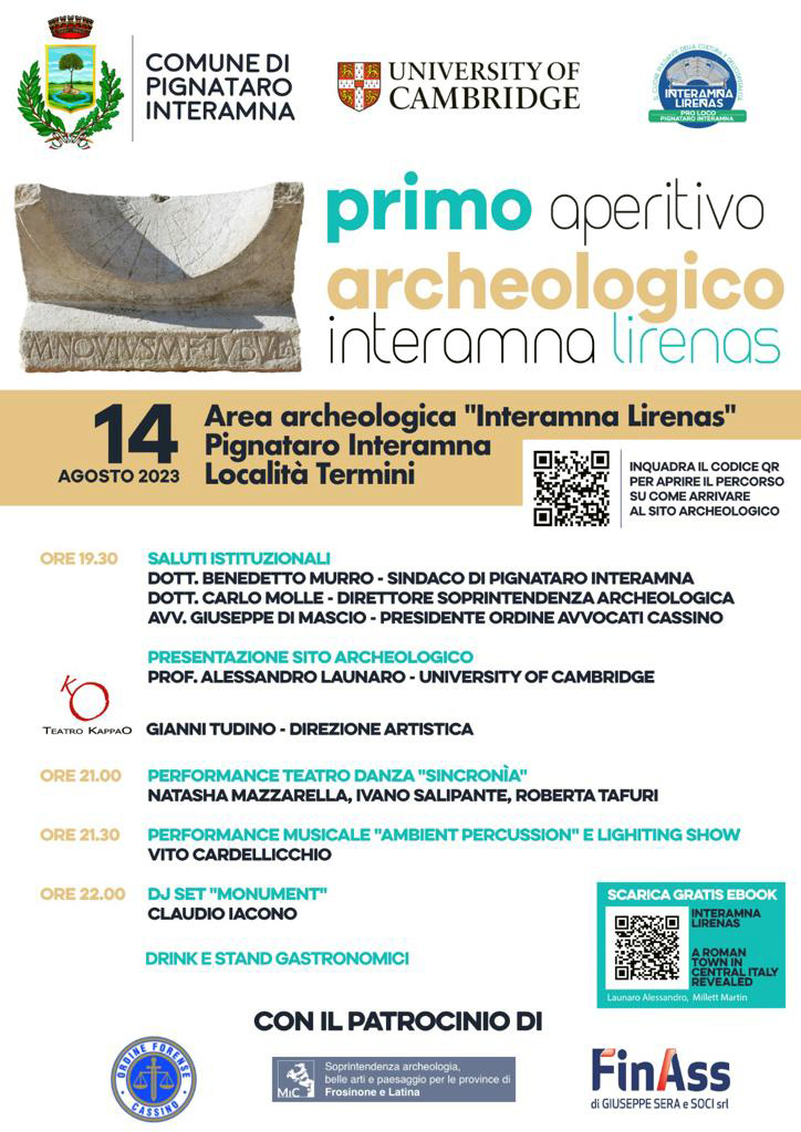Il 14 agosto alle ore 19:30, nel sito Interamna Lirenas, a Pignataro Interamna, un evento straordinario che unisce storia e intrattenimento. L’aperitivo ed apericena archeologico, in occasione della riapertura della campagna scavi 2023, darà nuova vita all’antico teatro romano della città.