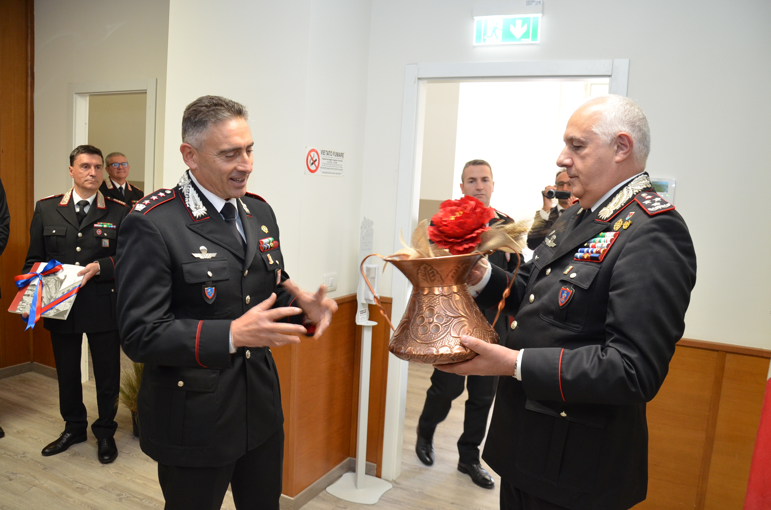 Nello scambio istituzionale dei doni, il Gen. C.A. Teo Luzi ha fatto omaggio del Crest del Comandante Generale, mentre il Colonnello Gabriele Mattioli di due oggetti che riconducono alla Ciociaria ed alla provincia di Frosinone: una Conca ciociara, oggetto in rame con la “vita larga”, simbolo dell’operosità e del sacrificio delle donne di questo territorio; un libro sull’Abbazia di Monte Cassino, distrutta completamente del 1943 dai bombardamenti degli alleati.