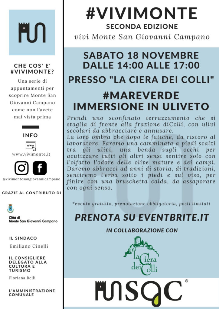 Sabato pomeriggio, La Ciera dei Colli, sarà nuovamente approdo di #mareverde, uno degli appuntamenti del cuore di #vivimonte. Piedi nudi e occhi bendati per lasciarsi inebriare attraverso tutti i sensi, dalla forza ancestrale della natura che la sconfinata distesa di ulivi de La Ciera custodisce.
