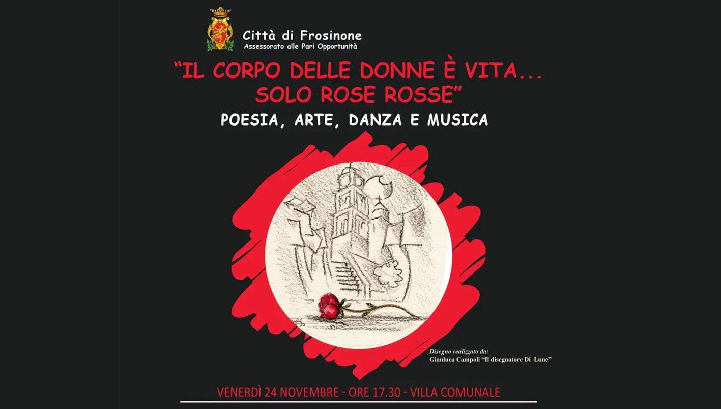 Venerdì 24 novembre, alle ore 17.30, la Villa comunale di Frosinone ospiterà l’evento dal titolo “Il corpo delle donne è vita… solo rose rosse”, nell’ambito degli eventi organizzati per la Giornata internazionale per l’eliminazione della violenza contro le donne.