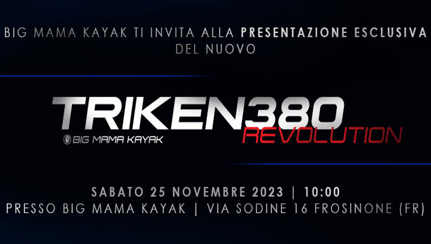 BigMama Kayak, azienda leader e unica in Italia nella produzione di kayak a pedali, presenta al pubblico domani, sabato 25 novembre, il nuovo TRIKEN 380 REVOLUTION. L’evento si terrà presso la sede aziendale di Frosinone (in via Sodine 16) a partire dalle ore 10:00.