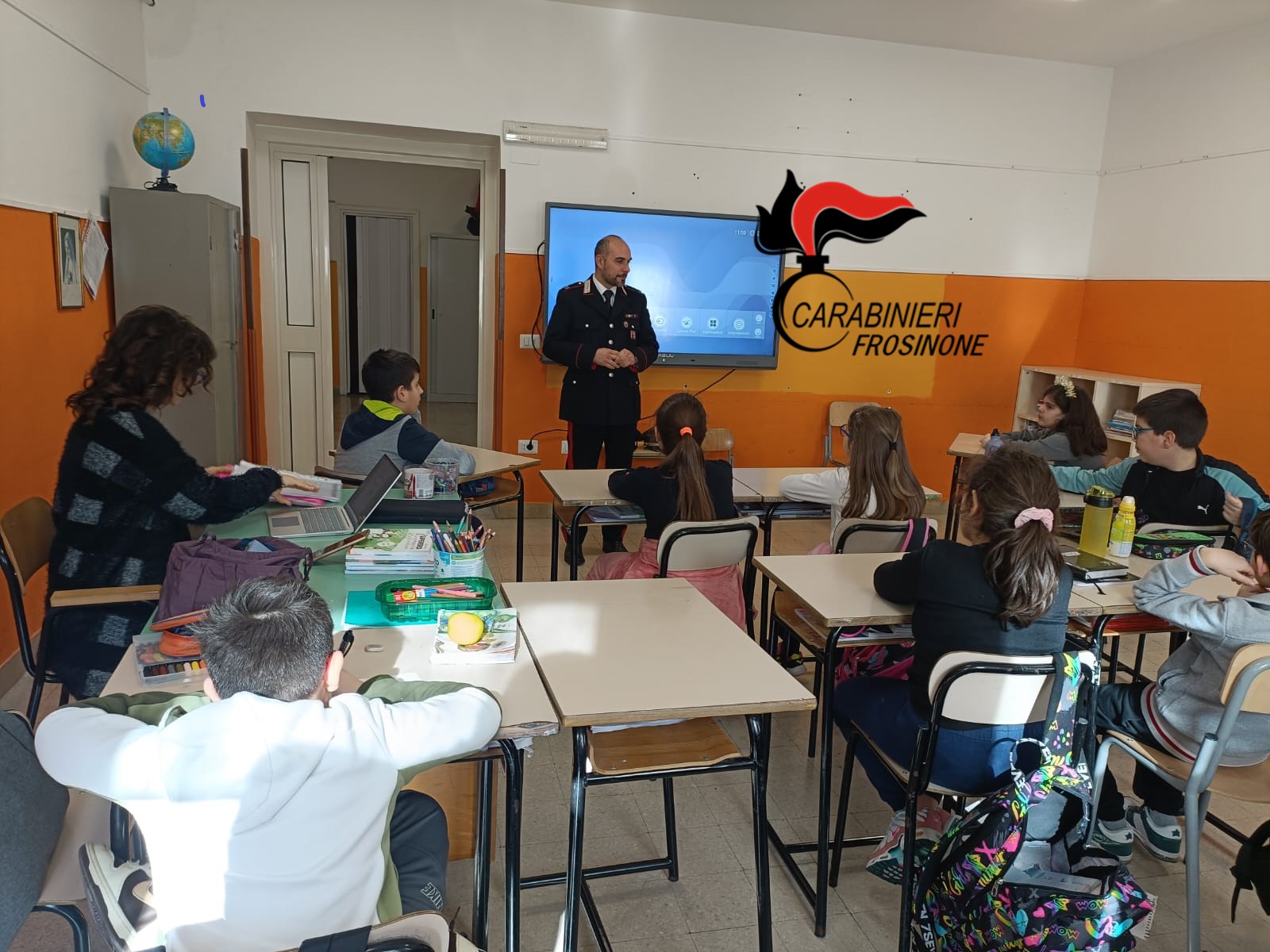 In questo contesto i militari della Stazione Carabinieri di Vico nel Lazio hanno incontrato, con la presenza dei loro insegnanti, gli alunni delle classi 4^ e 5^ elementare del plesso scolastico “I sette Fratelli Cervi” di Collepardo (Istituto Comprensivo Alatri 2), cercando di far riflettere gli studenti sugli aspetti giuridici di situazioni di vita reale spesso considerate “normali”, così da aiutarli a prendere coscienza delle implicazioni ad esse collegate, permettendo loro di maturare le competenze sociali attese.