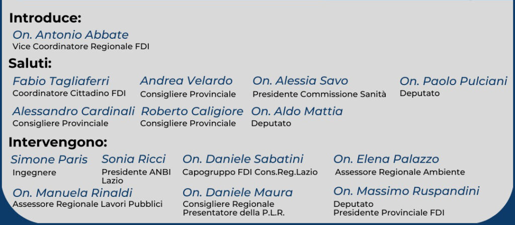 Presenti nomi importanti della politica provinciale, regionale e nazionale oltre a diversi tecnici che esporranno il contenuto della P.L.R.