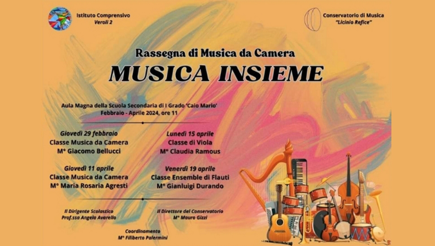 La prima rassegna si terrà presso la scuola Caio Mario dell’Istituto Comprensivo 2 di Veroli – presieduta dalla professoressa Angela Avarello e con il coordinamento della professoressa Francesca Lupi – dove i giovani avranno l’opportunità di essere trasportati in un viaggio musicale affascinante e coinvolgente, in 4 date tra febbraio ed aprile.