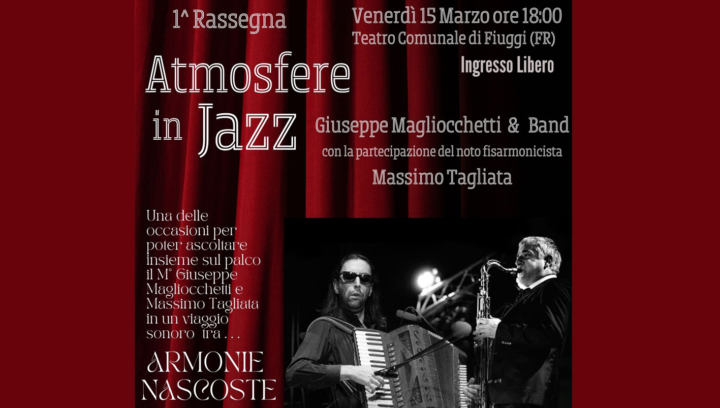 Si conclude il terzo appuntamento della prima rassegna denominata “Atmosfere in Jazz”, in programma domani, venerdì 15 marzo, alle ore 18, presso il Teatro comunale di Fiuggi. Ingresso libero.