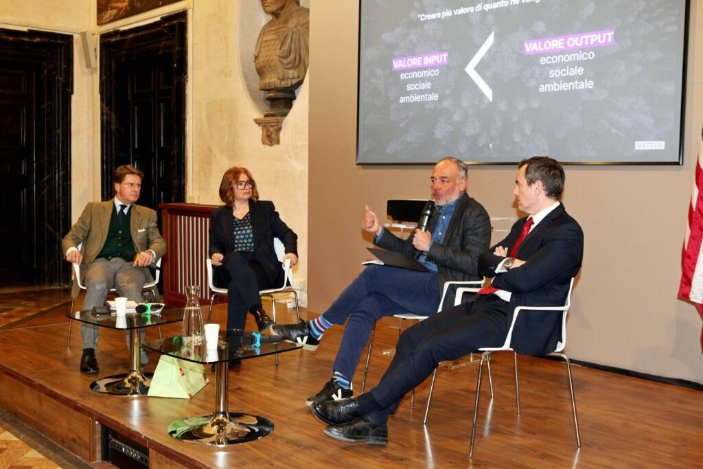 Il curatore dell’iniziativa, dottor Michele D’Ambrosio, ha accolto gli speaker invitati all’incontro: la dottoressa Stefania Rinaldi, Presidente e Amministratore Delegato della Rinaldi S.p.a. Società Benefit, industria di progettazione e realizzazione di materassi di alta qualità; il dottor Paolo Di Cesare, Co-founder di Nativa S.r.l. Società Benefit e prima B-Corp in Italia; Professor Enrico Foglia, Co-founder di Regenerative Marketing Institute.