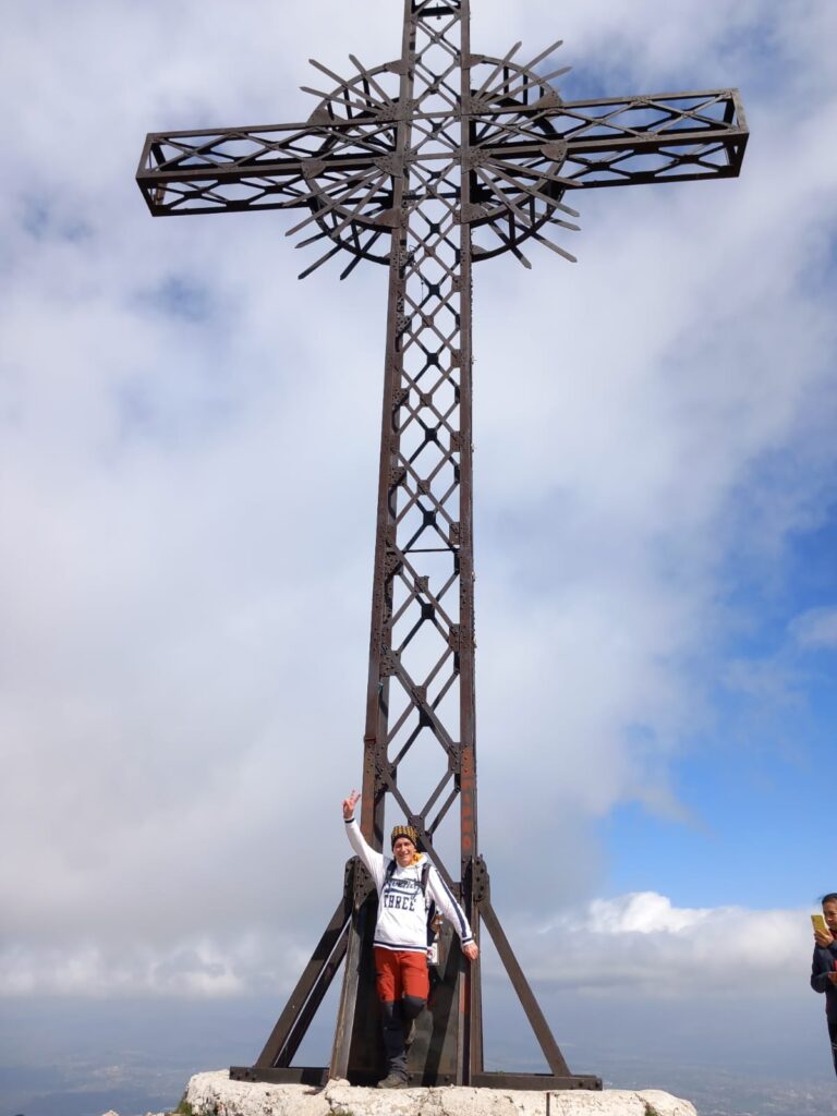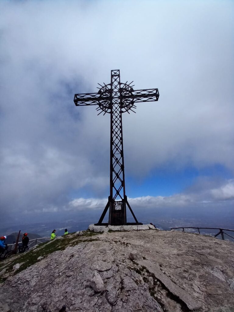 Quindi, Sindaco in testa e zaini in spalla, il folto e appassionato gruppo ha attaccato il sentiero e si è inerpicato su verso Cacume. Durante la salita Adriano Rotondi, impiegato comunale e grande appassionato di Dante e della Divina Commedia, ha spiegato con competenza le 12 statue posizionate nei punti più belli del sentiero. Infine, l’arrivo sulla sommità del monte dominato dalla grande croce metallica che, con i suoi 14 metri, è sicuramente una della più imponenti di tutto l’Appennino.