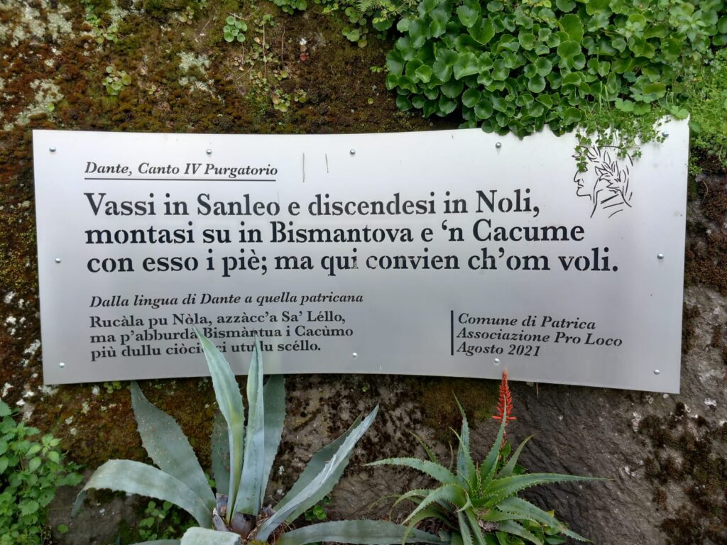 Cacume viene definita “la montagna di Dante” in quanto nella Divina Commedia viene citata come allegoria della montagna del Purgatorio. Da qui la brillante idea di realizzare la “Passeggiata Dantesca” lungo il sentiero che conduce alla vetta, recentemente ribattezzato il Sentiero di Dante.