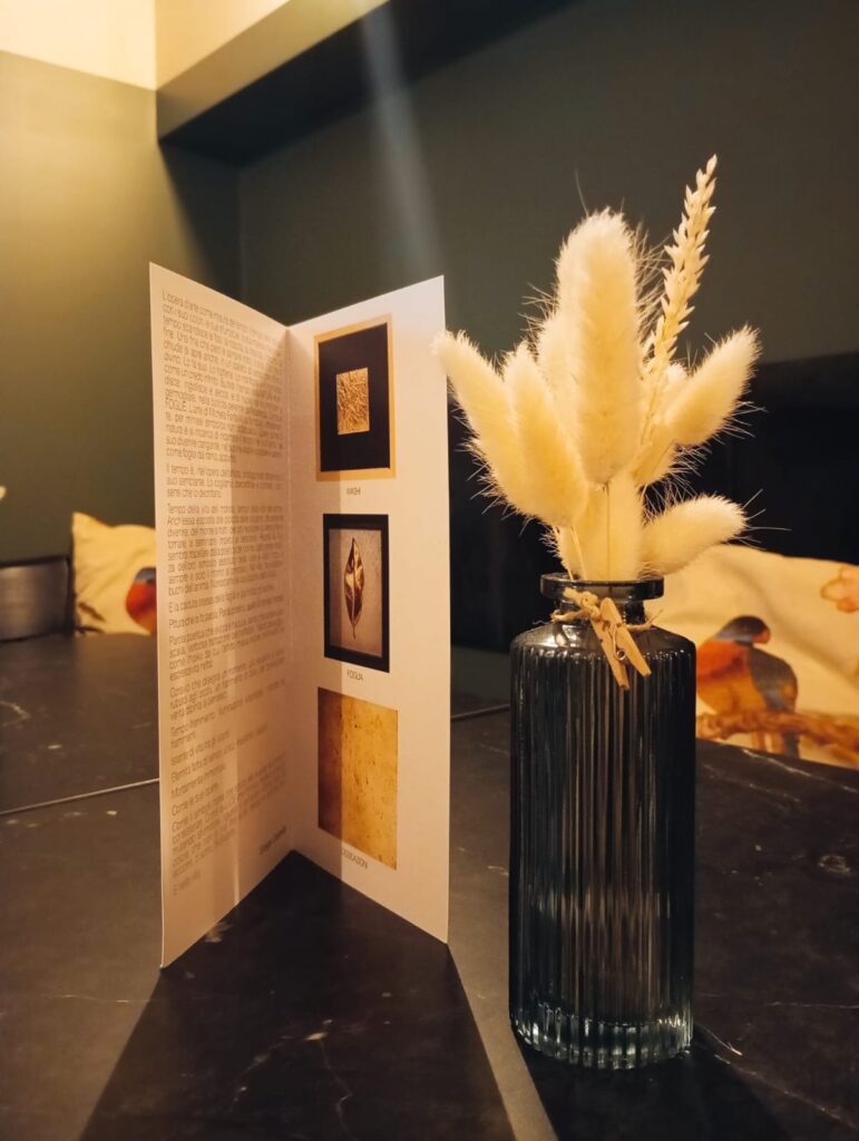 Al centro della mostra il tempo e la natura. L’opera d’arte come misura stessa del tempo che quel tempo scandisce e celebra. Colori, sfumature, materia. Un involucro di sapiente manualità a racchiudere la sostanza della vita: la nascita, la crescita, il declino, la fine. Una fine che però è sempre inizio.