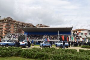 Alle ore 10.30, nel parco cittadino, il Questore e il Prefetto, dopo aver ricevuto gli onori hanno passato in rassegna il reparto schierato.