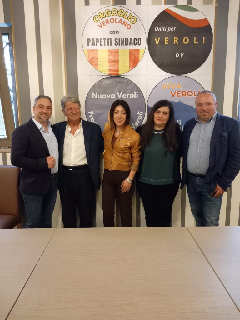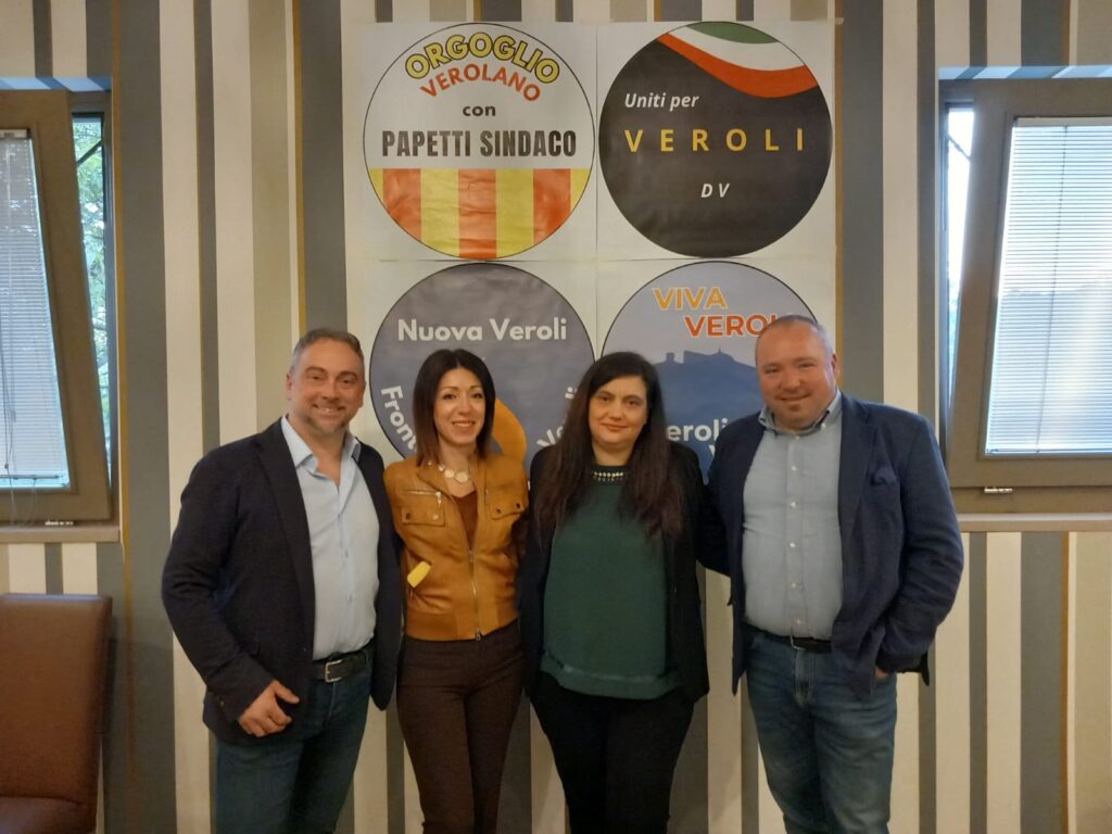 Brevi discorsi con i quali ognuno ha illustrato le ragioni che hanno determinato la scelta di sostenere Papetti. A parlare per prima è stata Brunilde Mazzoleni (Viva Veroli per Veroli Viva), seguita da Gaia Pinto (Nuova Veroli – Fronte Veroli), Igino di Lorenzo (Uniti per Veroli) e lo stesso Cristiano Papetti (Orgoglio Verolano con Papetti Sindaco).