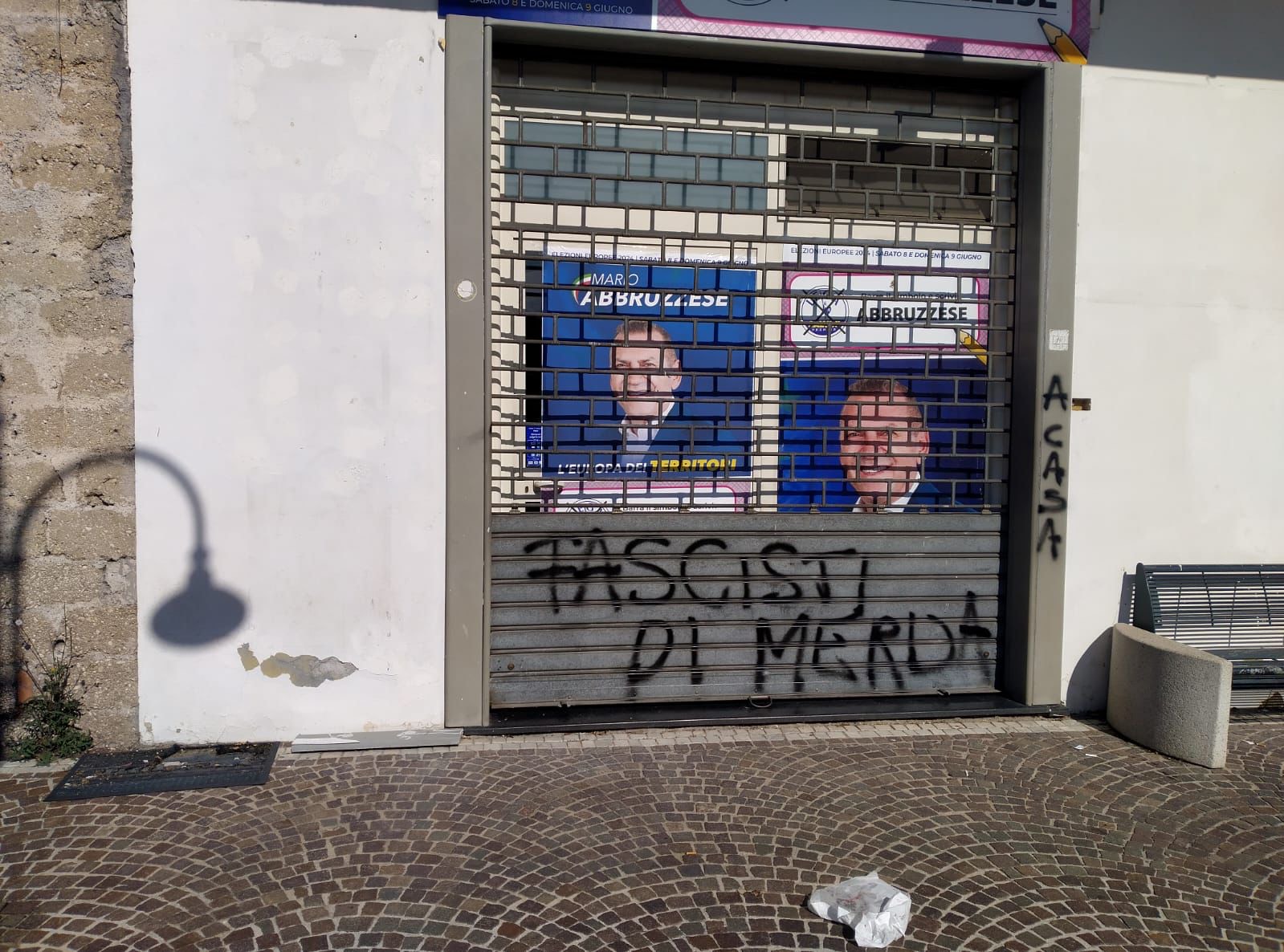 Imbrattata con scritte vandaliche la serranda della sede elettorale di Alatri del candidato alle Europee per la Lega, Mario Abbruzzese.