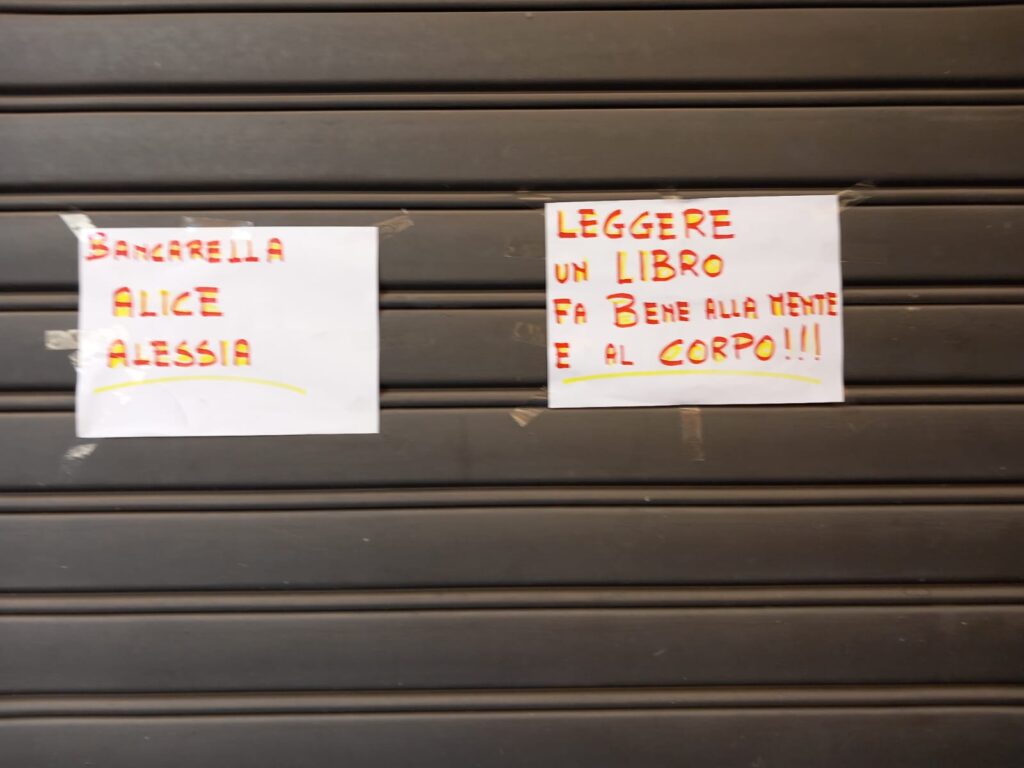 Sono andate nel centro storico di Alatri, la loro città, hanno sistemato i volumi sulla soglia di due tristemente chiusi negozi in Corso Vittorio Emanuele (nel tratto che fa angolo con via Vezzacchi), hanno attaccato due fogli di quaderno come “insegne” (“Bancarella Alice e Alessia” – recita il primo – “Leggere un libro fa bene alla mente e al corpo” riflette invece il secondo) ed hanno iniziato la loro attività commerciale.