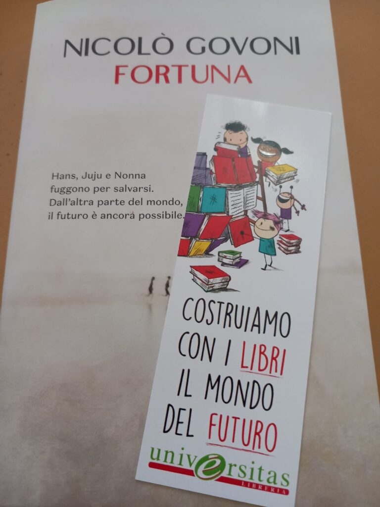 Quindi, la scelta del libro e anche stavolta si è ripetuto un ricorrente fenomeno: il libro che “chiama”, che chiede di essere acquistato e letto. Ed è andata esattamente così. Ho portato con me (il costo non ha importanza ovviamente, le risate e le parole di Alice e Alessia valgono oro) “Fortuna” di Nicolò Govoni, “una storia che sembra proiettare il lettore nel mondo di Orwell”, l’autore di 1984, guarda caso finito di rileggere da non molto.