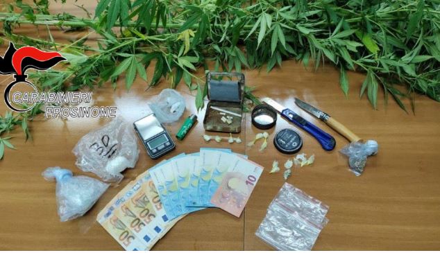 I militari immediatamente hanno effettuato una perquisizione domiciliare presso l’abitazione dell’uomo fermato che ha permesso di rinvenire altri due involucri contenenti “cocaina” del peso di circa 60 grammi, una modica quantità di anfetamina, vari semi di canapa indiana, materiale da confezionamento consistente in sostanza da taglio tipo “mannite”, un bilancino di precisione, un coltello, un taglierino e vari ritagli di busta utilizzati per confezionare lo stupefacente. Inoltre, nel giardino antistante l’abitazione è stata trovata una pianta di “cannabis indica” alta circa 2 metri, con la presenza di infiorescenze.