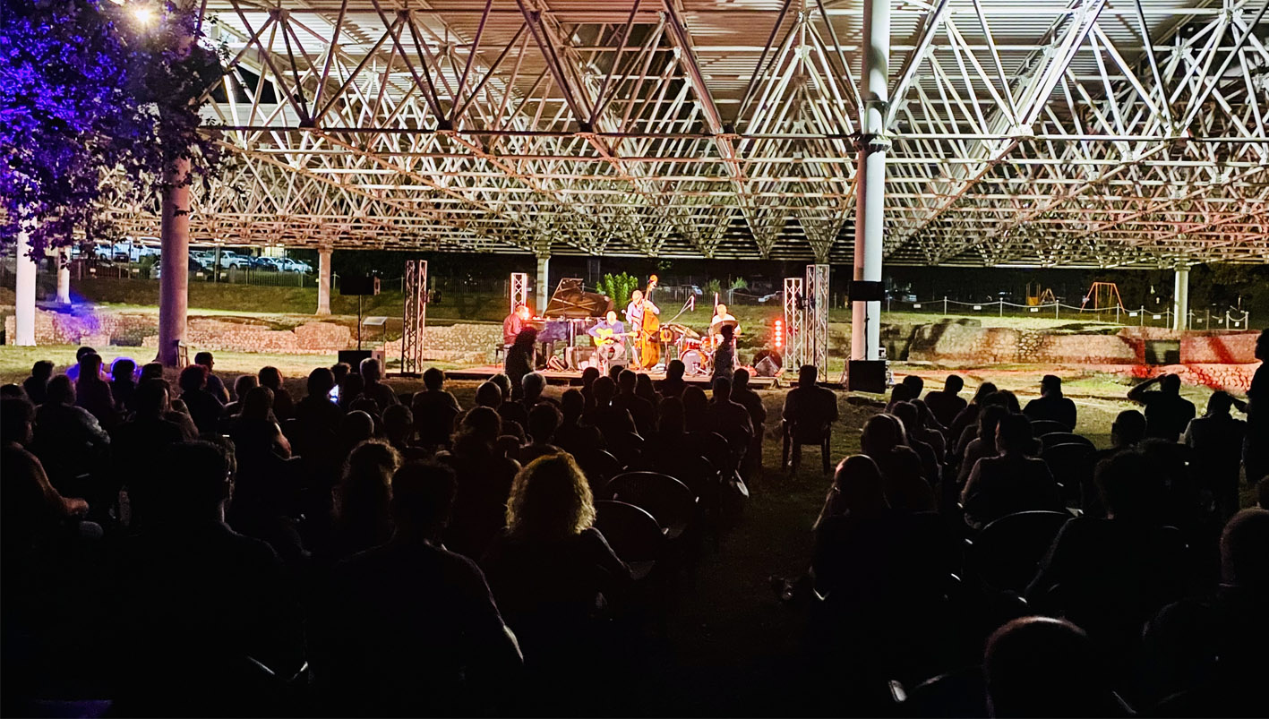 L’evento, che si è tenuto nella contrada di Madonna del Piano all’interno della suggestiva cornice degli scavi archeologici di una villa romana di età imperiale, ha offerto un’esperienza unica, combinando la magia della musica jazz/swing con la bellezza del luogo.