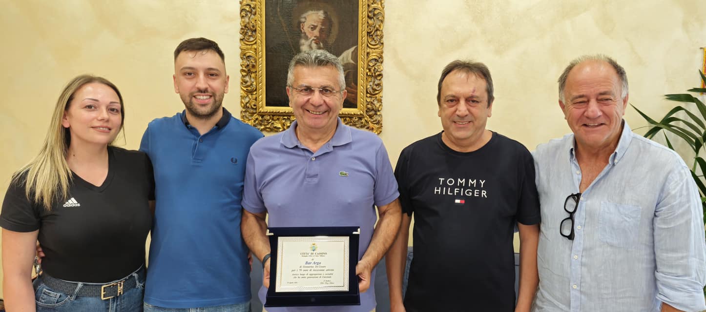 Il bar Argo taglia il traguardo dei 70 anni di attività. E l’Amministrazione Comunale rende omaggio, con una targa, ad un vero e proprio pezzo di Storia di Cassino, incastonato tra via Enrico De Nicola e Piazza De Gasperi.