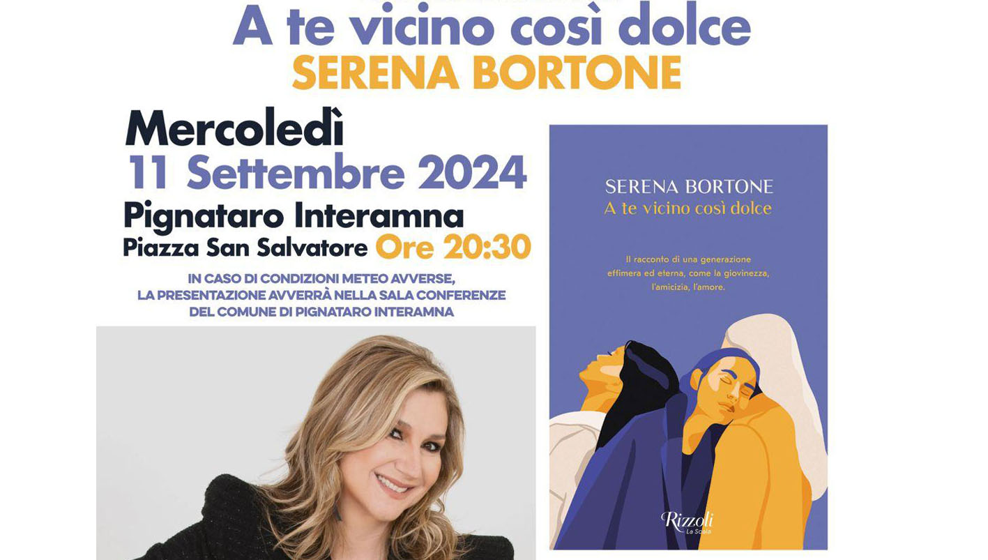 Il Comune di Pignataro Interamna ospiterà un evento di alto spessore culturale con la presentazione del libro “A te vicino così dolce” di Serena Bortone, che si terrà mercoledì 11 settembre, alle ore 20.30, nella splendida cornice di Piazza San Salvatore.