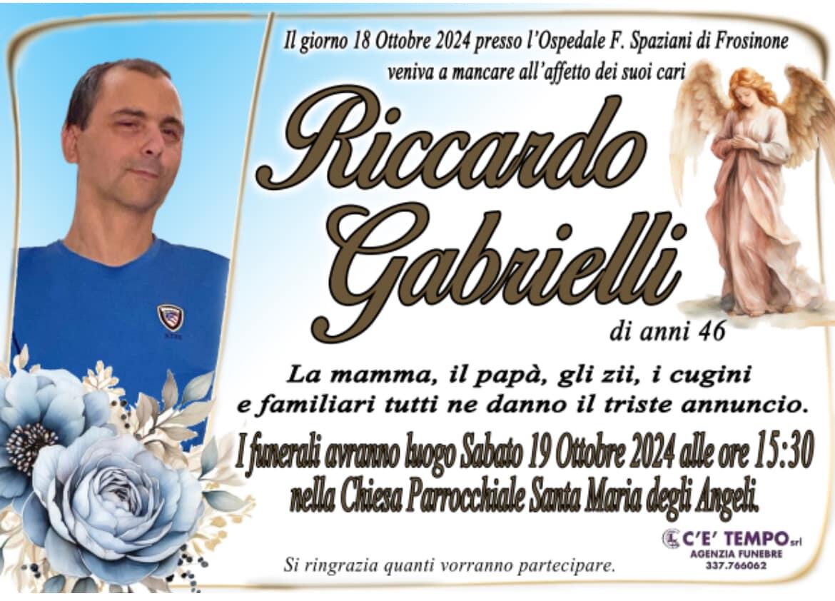 Riccardo Gabrielli era molto conosciuto a Frosinone, dove lascia un vuoto incolmabile. I funerali si svolgeranno domani, sabato 19 ottobre, alle 15.30 nella Chiesa Parrocchiale di Santa Maria degli Angeli a Frosinone.