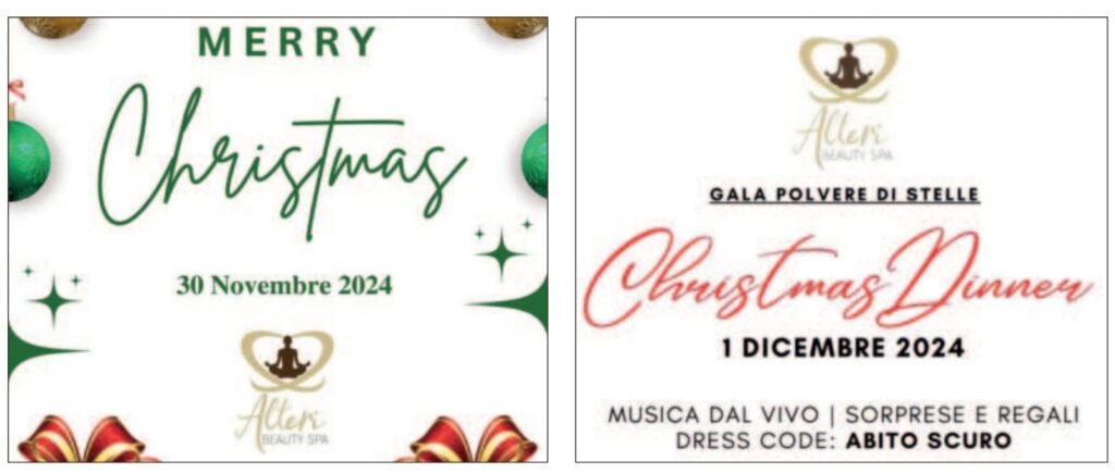 Un Natale dedicato alla bellezza, alla cura del proprio corpo, al benessere, in una parola: alla vita. E’ il Christmas Party, l’evento organizzato dal centro benessere Alteri Beauty Spa in programma domani, sabato 30 novembre, presso la sede di via Guglielmo Marconi 61, a Morolo.