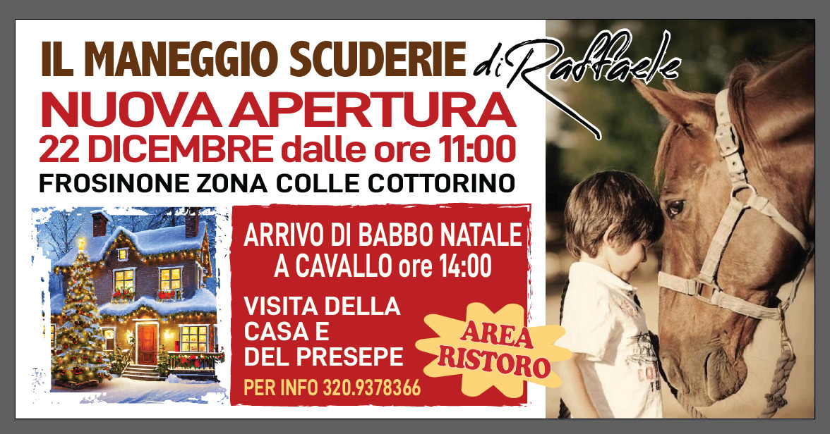 Si profila quindi una bella giornata di festa per grandi e piccoli, sia per scambiarsi gli auguri natalizi, sia per partecipare alla festa e sia per scoprire il nuovo maneggio di Colle Cottorino (per ogni ulteriore informazioni si può contattare il numero 320.9378366).