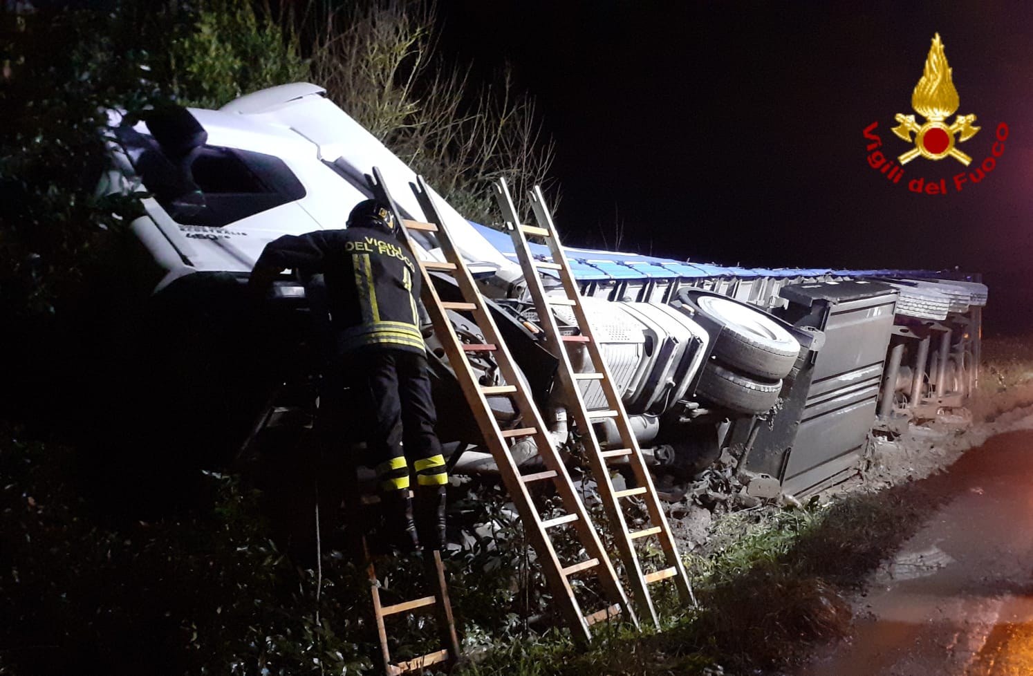 Per mettere in sicurezza il mezzo, che trasportava sacchi di granulato di materiale plastico, sono intervenuti i Vigili del Fuoco