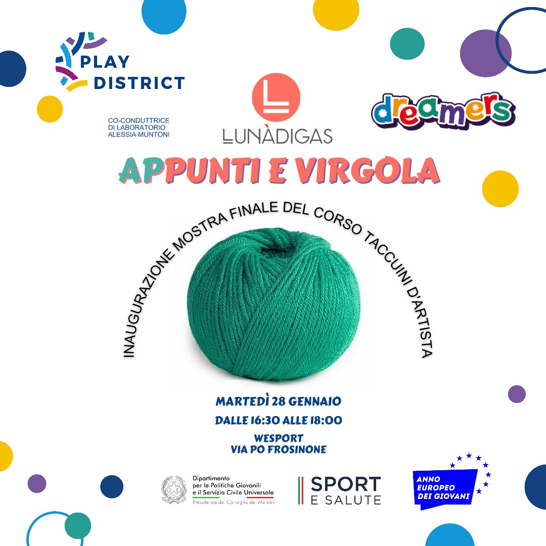 Martedì 28 gennaio, dalle 16:30 alle 18:00, presso WeSport Frosinone, si terrà l’inaugurazione della mostra “Appunti e virgola”. L’esposizione presenta i contenuti del taccuino d’arte nato dal laboratorio “La cura delle immagini”, in cui i partecipanti hanno esplorato creativamente temi come la comunità, la genitorialità e l’autodeterminazione.