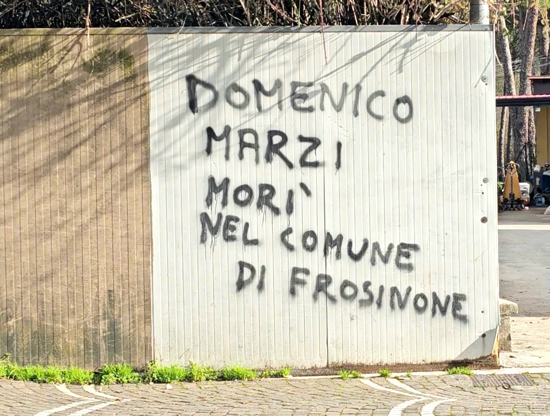 ‘Domenico Marzi morì nel Comune di Frosinone’ recita il graffito apposto su una recinzione. Un attacco, molto probabilmente, al consigliere comunale di opposizione ed ex sindaco di Frosinone, che nei giorni scorsi era stato criticato per il suo avvicinamento, su alcuni punti programmatici, alla linea seguita dall’Amministrazione Mastrangeli: in pratica suona come una sorta di ammonimento, una neanche troppo velata minaccia.