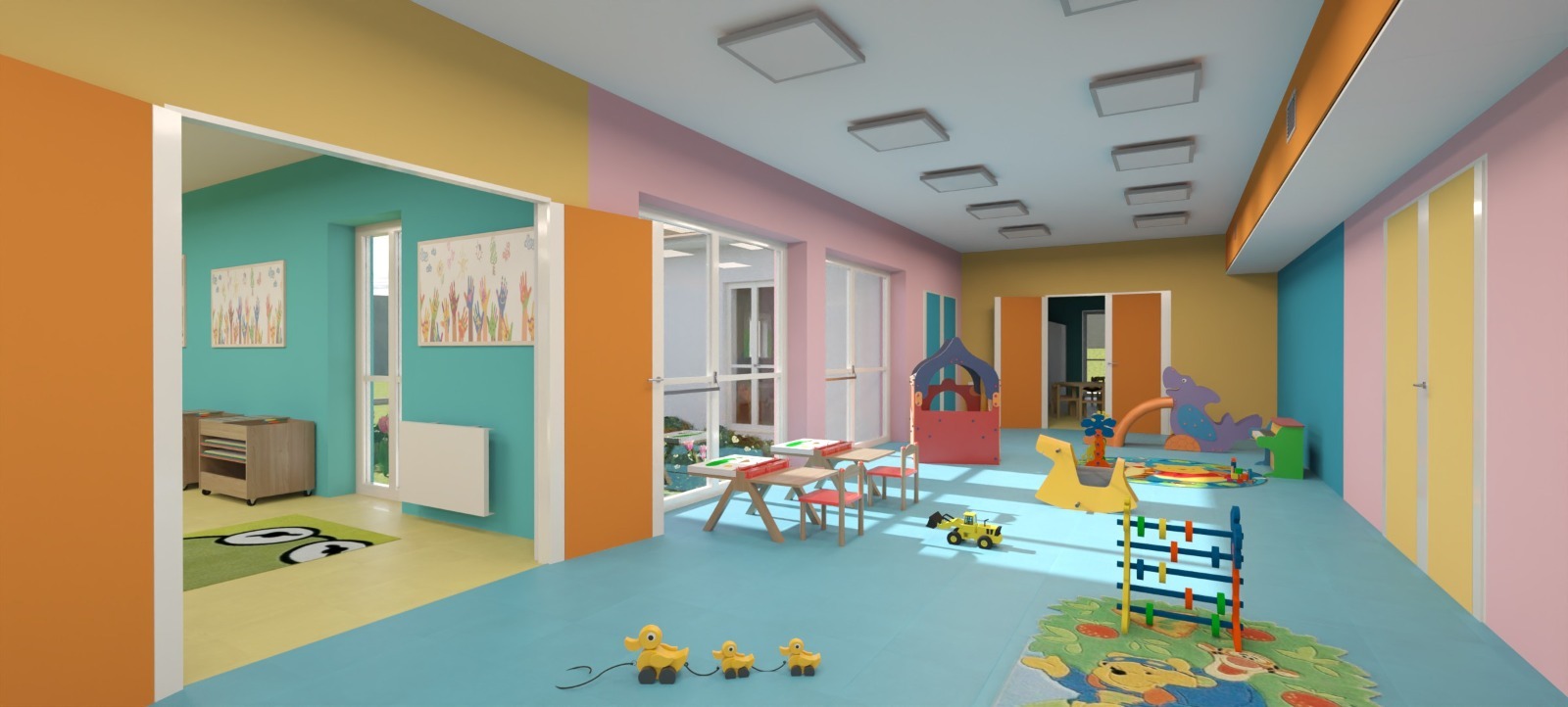 Tutte le sezioni comunicano ed hanno accesso dallo lo spazio centrale comune. Ogni sezione è indipendente dal punto di vista funzionale e didattico ed è formata dall’aula per le attività e per il pranzo, da una stanza per il riposo, dai servizi e da un accesso indipendente verso il giardino. Dopo la consegna lavori effettuata nei giorni scorsi lunedi 24 Febbraio la ditta aprirà il cantiere”.