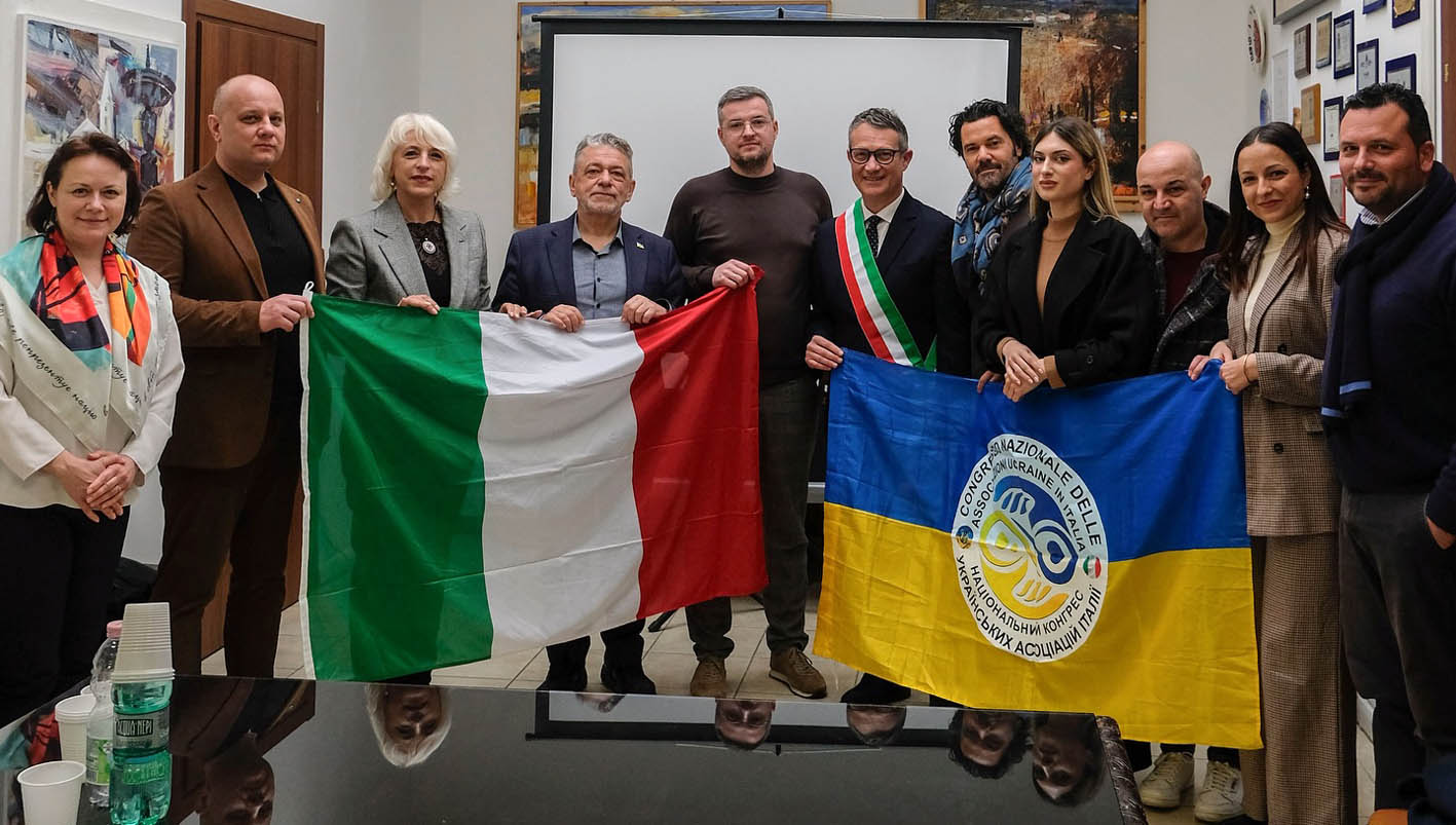 Nella giornata di ieri, lunedì 10 marzo, il sindaco Domenico Alfieri insieme alla Giunta Comunale e al Presidente del Consiglio Comunale Cenciarelli, hanno accolto nella sede comunale una delegazione ucraina composta Pavlo Zhurba, vicepresidente dell’Amministrazione regionale di Ternopoli, Mykhailo Bachynskyi, imprenditore nel campo medico, Vadym Sydiachenko diplomatico ucraino, rappresentante del Congresso Nazionale AUI in Ucraina, Oksana Piskunova, giornalista e Lara Levchun Presidente del Congresso Nazionale delle associazioni ucraine in Italia.
