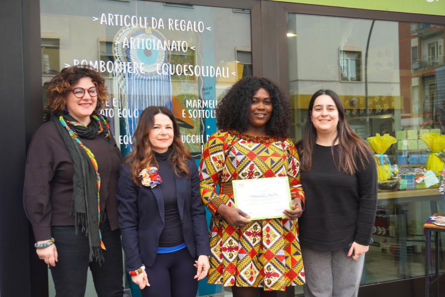 Per celebrare la conclusione della prima parte del progetto, nei giorni scorsi, presso la Bottega Equa di Frosinone, è stato organizzato l’evento “Cucimondo” durante il quale alle donne protagoniste del percorso sono stati consegnati gli attestati di partecipazione. Un momento di festa e riconoscimento per l’impegno e il talento messi in campo. Tra i presenti il Direttore Generale di Diaconia Loreto D’Emilio, Salvatore Di Ciaccio di Confcooperative Lazio Sud e la Presidente di Confagricoltura Donna Frosinone Alessandra Atorino.