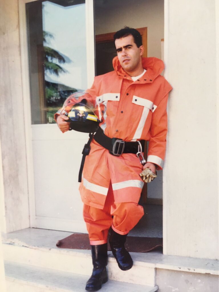Tutto ebbe inizio nel lontano agosto del 1991, quando venne assunto nel Corpo Nazionale dei Vigili del Fuoco. Moltissime ed altrettanto diverse le assegnazioni, gli incarichi e le promozioni, fino a giungere presso la Direzione Centrale per la Formazione delle Scuole Antincendio, svolgendo il ruolo di formatore, educatore e punto di riferimento per le nuove leve.