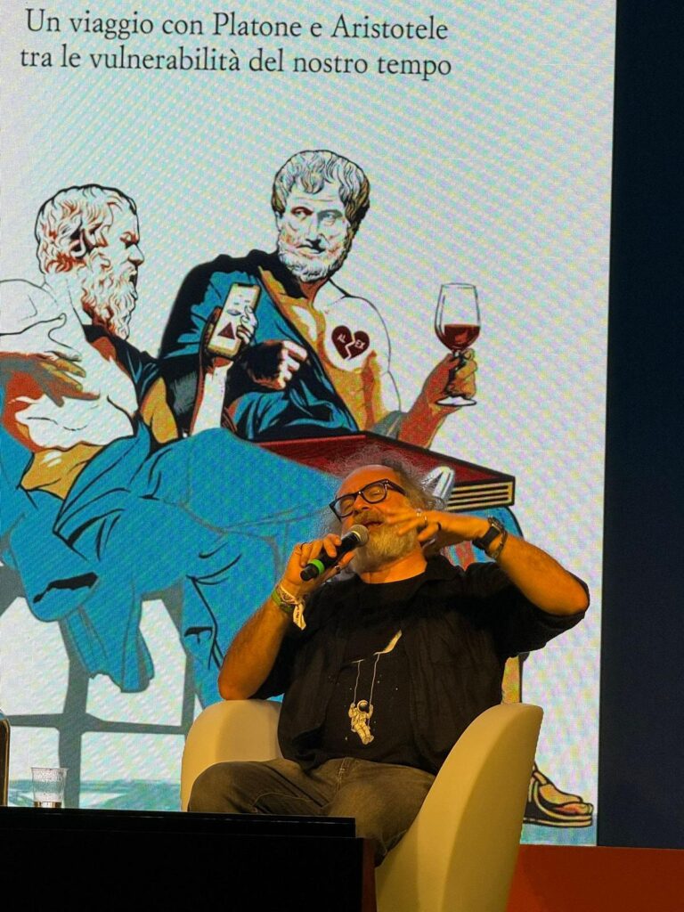 È su queste fondamenta che Saudino innesta il suo percorso filosofico: un viaggio attraverso il pensiero di Platone e Aristotele, non come esercizio scolastico, ma come via d’accesso alla comprensione delle fragilità che segnano la nostra epoca. Solitudine, perdita del senso, smarrimento identitario, crisi del dialogo e della verità: le stesse questioni che i due maestri affrontavano nella polis ateniese di 2500 anni fa risuonano oggi con rinnovata urgenza.