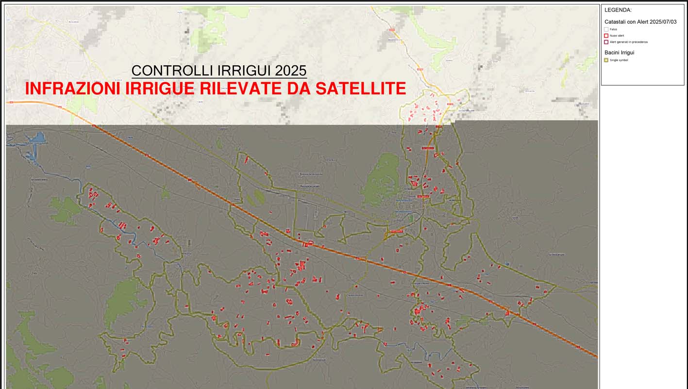 Contemporaneamente la società incaricata che gestisce il controllo satellitare sta fornendo i relativi dati (terreni bagnati senza domanda) che saranno oggetto di puntuale verifica da parte di squadre dedicate alle opportune verifiche. È stata, altresì, ultimata anche la verifica degli abusi della stagione 2024 e proprio in questi giorni, completata la fase amministrativa, vengono recapitati gli inviti al contraddittorio per gli utenti individuati.