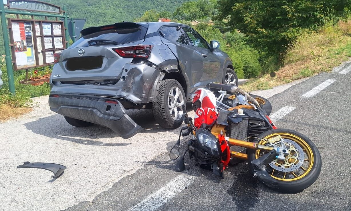 Incidente questa mattina alle 10 sulla starda statalle 666 di Sora. A scontrarsi, per cauuse al vaglio, un’auto, una Nissan Juke ed una moto “Aprilia”.