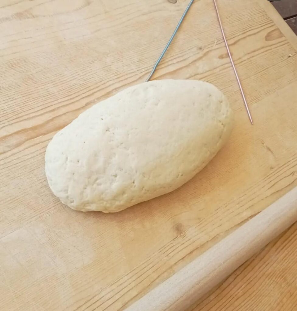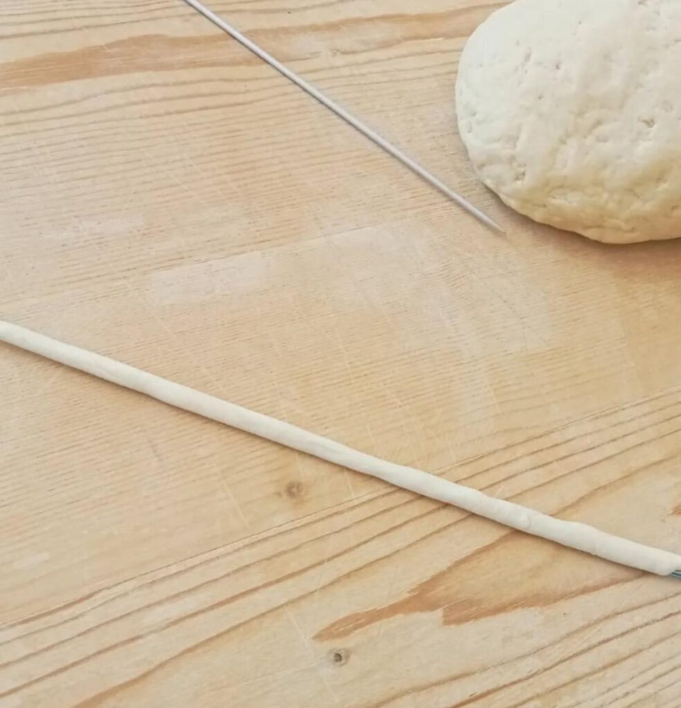 Un ferro da calza, o da ombrello, è lo strumento che invece si rende necessario per ‘sferrare’ l’impasto ottenuto. Dopo aver amalgamato correttamente acqua e farina ed aver fatto riposare quanto ottenuto, si procede con la stesura del maccherone. E’ un gioco di abilità perché l’impasto dovrà arrotolarsi attorno al ferro, essere allungato sino ad ottenere una sorta di spaghettone e poi delicatamente sfilato ed adagiato ad essiccare.