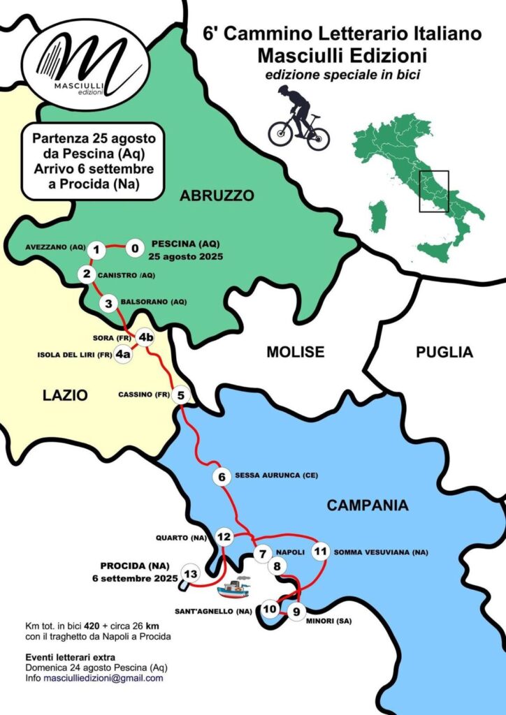 Sora, città ricca di storia e crocevia naturale tra la Ciociaria e il territorio montano, diventa così fulcro di riflessione e scoperta, grazie alla sua storica vocazione al viaggio e all’accoglienza. Il Cammino Letterario è un’iniziativa della casa editrice Masciulli Edizioni che, giunta alla sua sesta edizione, ha scelto di cominciare quest’anno da Pescina il 24 agosto e concludersi a Procida il 6 settembre, abbracciando l’Italia con un vero e proprio itinerario artistico e culturale.