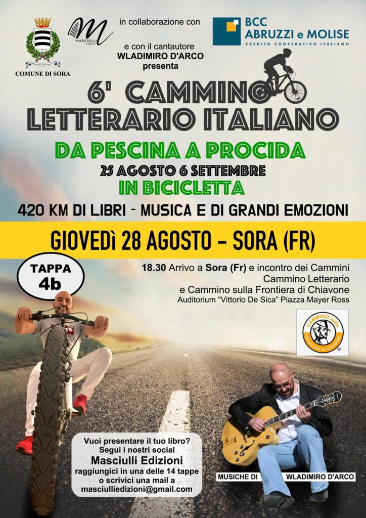 Sora accoglie con entusiasmo la quarta tappa del “6° Cammino Letterario Italiano”, un evento itinerante che celebra l’unione tra territori, storie e immaginazione attraverso la letteratura. Domani, giovedì 28 agosto, la città diventerà protagonista di una giornata dedicata alla cultura e al dialogo, ospitando i due promotori del progetto: l’editore pescarese Alessio Masciulli e il cantautore Wladimiro D’Arco.