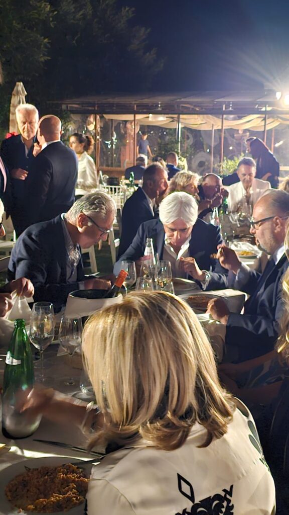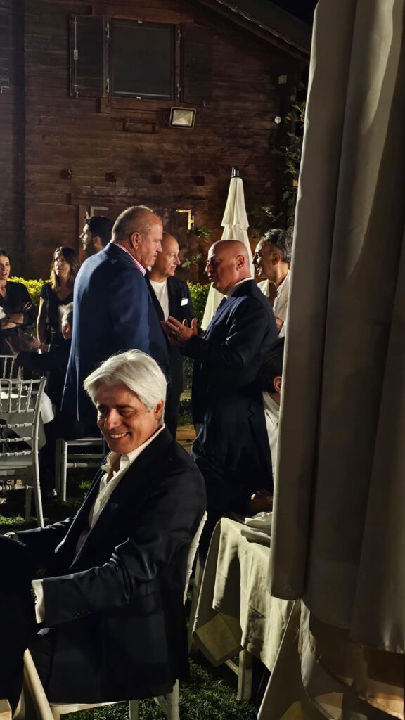 Per l’occasione, una festa a bordo piscina in un angolo di paradiso: Casale Marella, a Patrica. Un rifugio verde con dj, candele e tavoli in giardino: una festa che ha richiamato circa cento invitati, solo i più stretti. Un’impeccabile organizzazione grazie all’amico di una vita, Diego Maiorano, che ha deciso di ‘aprire le danze’ intorno alle 19 con coppe di champagne e pesce a volontà. Poi la cena. Durata fino alle 3 della notte.