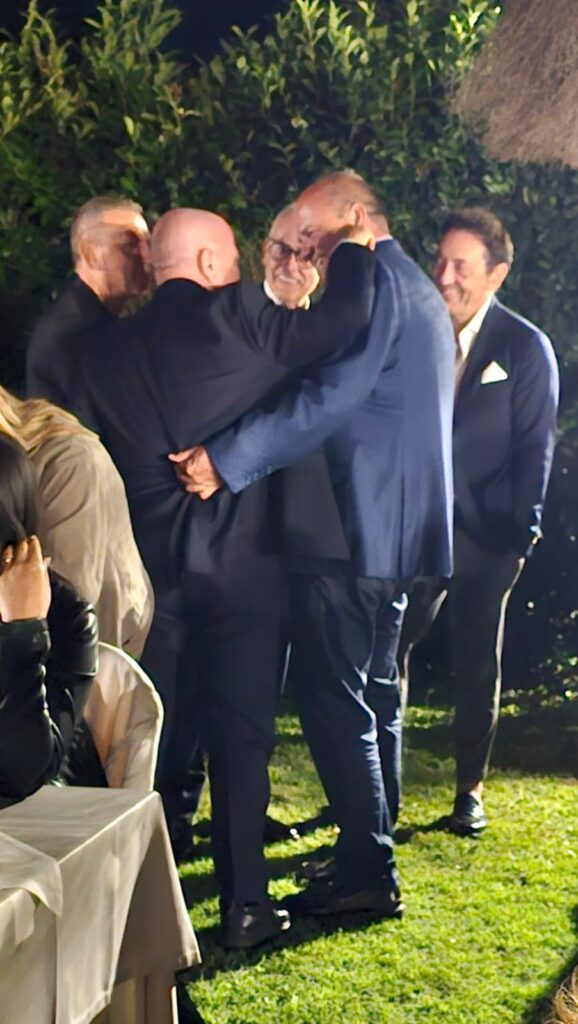 Ma c’era anche il consigliere di opposizione Domenico Marzi, finito in queste settimane alla ribalta delle cronache per il suo appoggio forte e incondizionato al primo cittadino di Frosinone: un patto programmatico, lui continua a ripetere, ma la sua espressione tradisce molto altro. A gran sorpresa Memmo è arrivato in auto insieme al segretario regionale del Pd, nonché ex europarlamentare, assessore e consigliere regionale e presidente del Consorzio Industriale del Lazio, Francesco De Angelis. E insieme sono rimasti al tavolo per tutta la serata. Con continui avvicinamenti da ogni parte politica: a partire dall’ormai inseparabile Mastrangeli, per arrivare ai tanti altri che si intravedono nelle foto. Ma Memmo e Francesco non avevano litigato? Era un po’ che era sceso il gelo tra loro. A quanto si pensava, forse. Perché i loro rapporti ieri sera sono sembrati, invece, decisamente stretti e amicali. Compreso il momento della foto dietro alla torta con il festeggiato, che ritrae il duo Marzi-De Angelis in compagnia perfino dell’ex sindaco Nicola Ottaviani. Ma il trio è stato notato anche prima, mentre parlavano tra sorrisi, carezze, abbracci e perfino pizzicotti sulle guance.